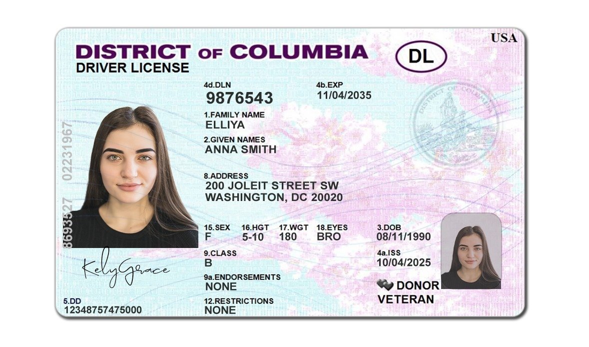 🖼️ District of Columbia Driving Licence PSD Template (Version 4) Preview: