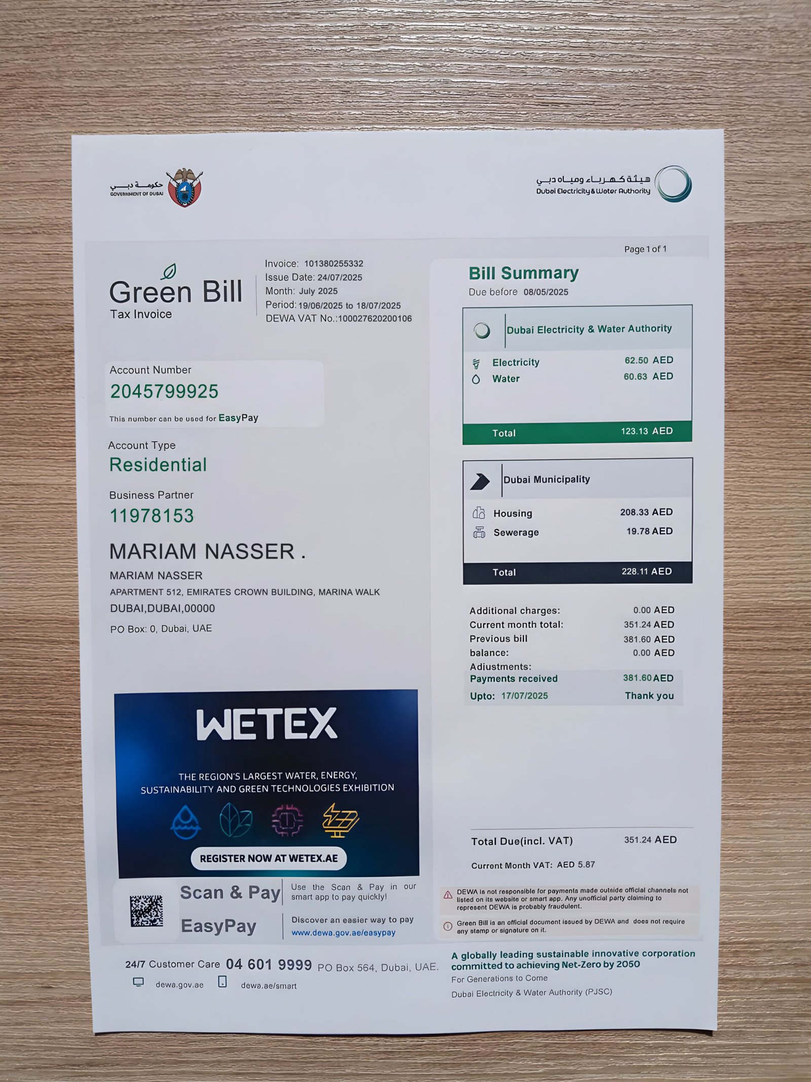 Green Bill Utility PSD Template – UAE Editable, Instant Download
