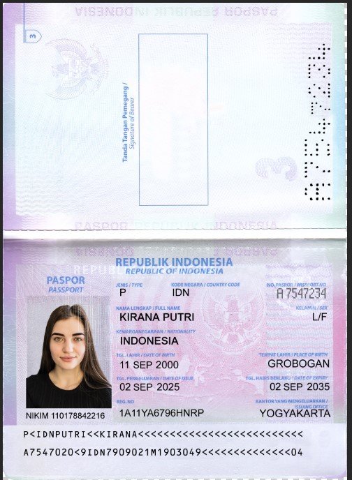 - ✅ Biometric design — Based on current Indonesia passport format (Version 1)