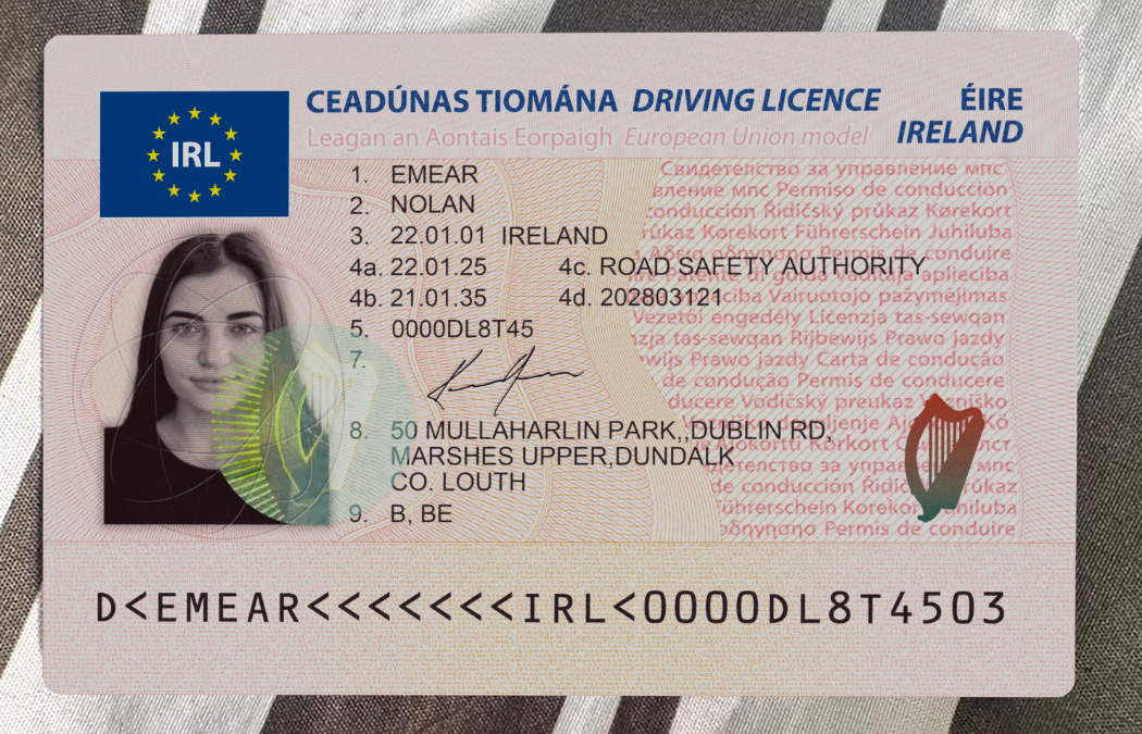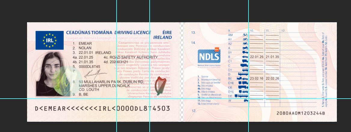 🖼️ Ireland Driving Licence PSD Template Preview:
