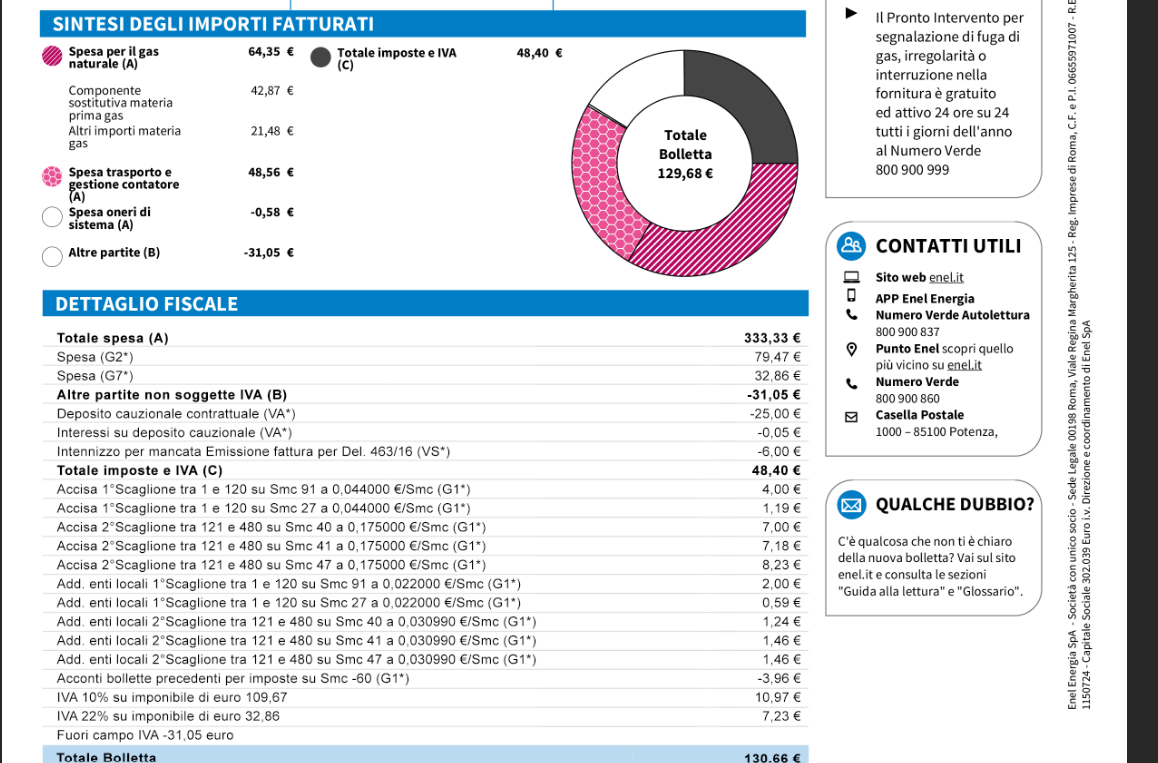 • βœ… Latest design β€” Based on current Italian gas utility bill format