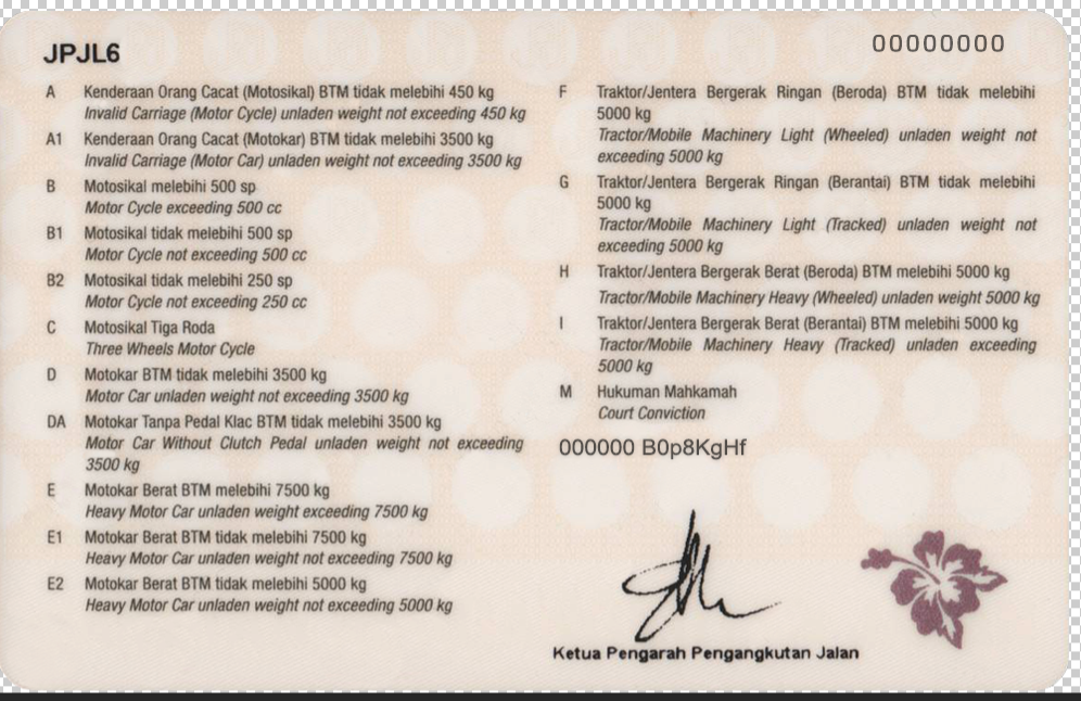 πŸ–ΌοΈ Malaysia driving licence Template Preview:
