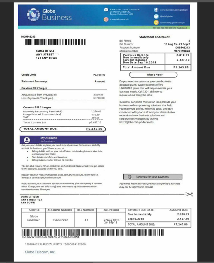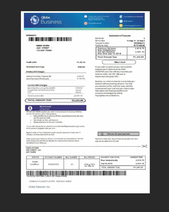 - ✅ Latest design — Updated with current Globe Telecom bill formats