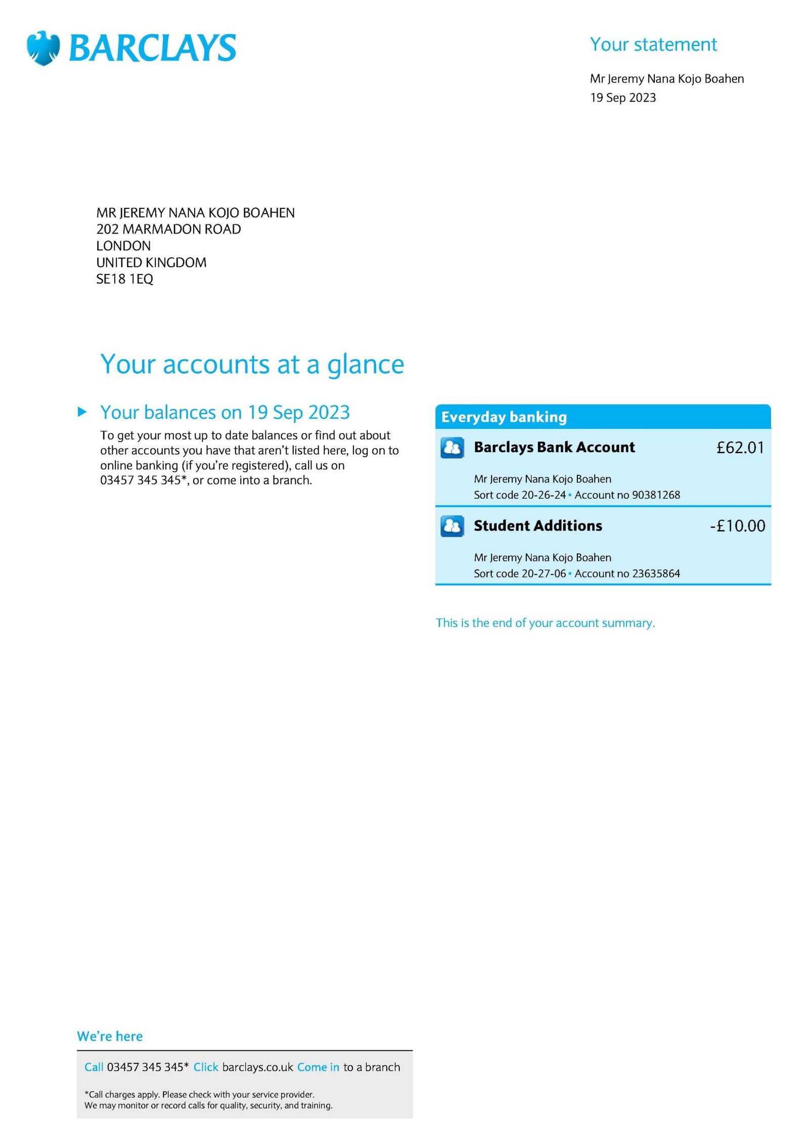 🖼️ UK Barclays Bank Statement PDF Template Preview: