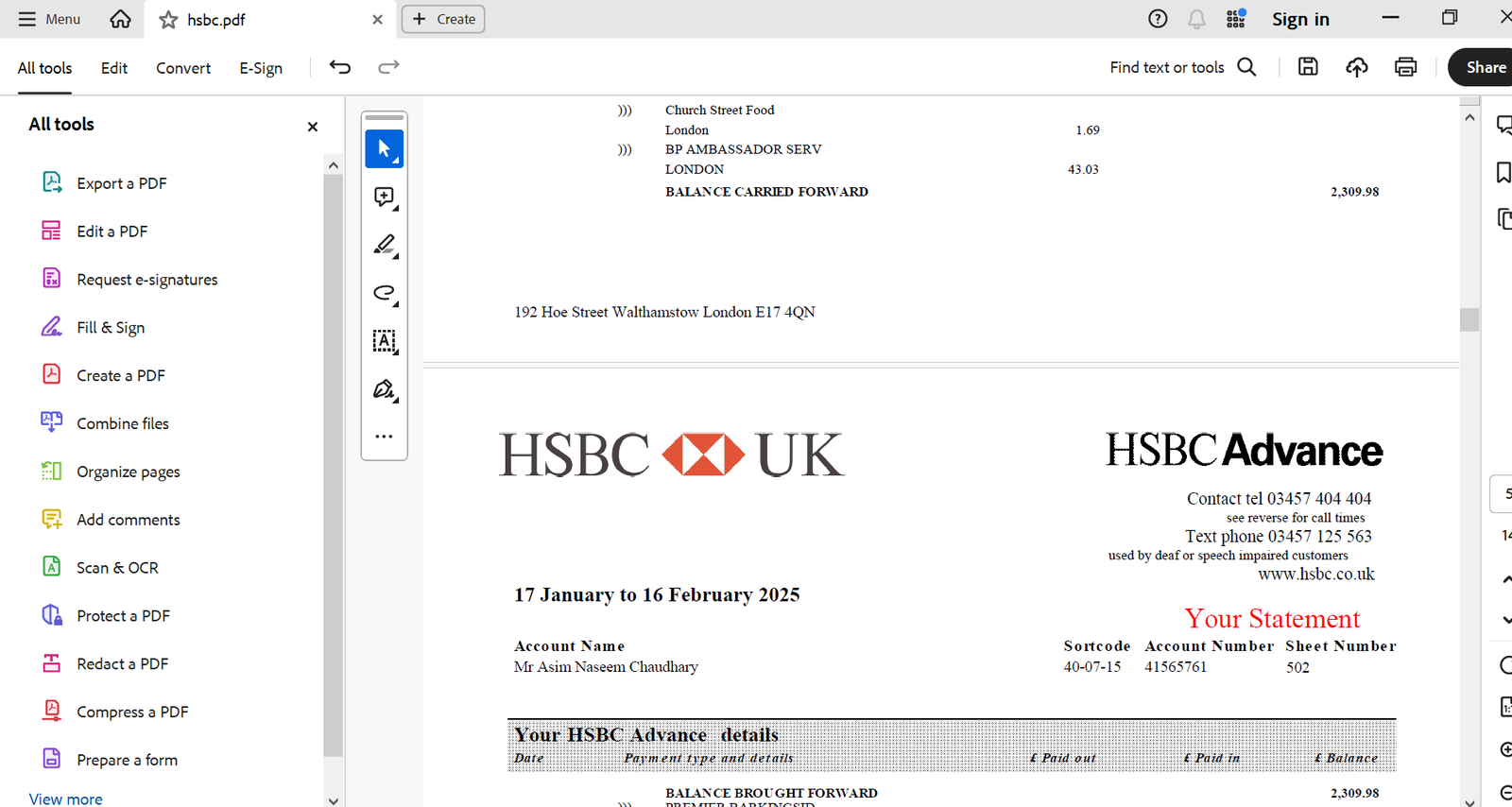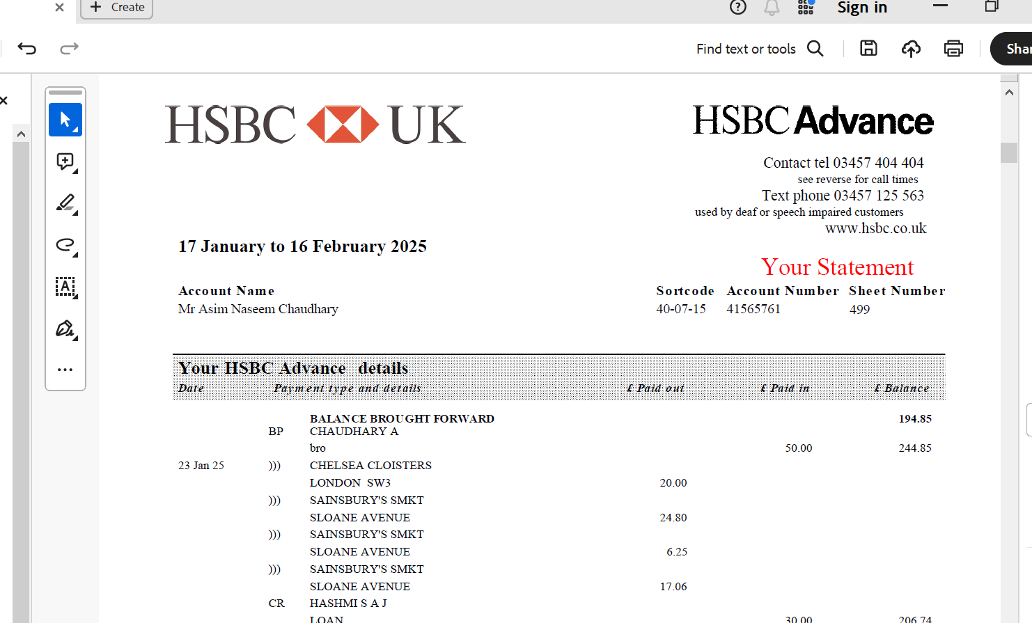 🏦 UK HSBC Bank Statement Editing Service – Professional PDF Editing