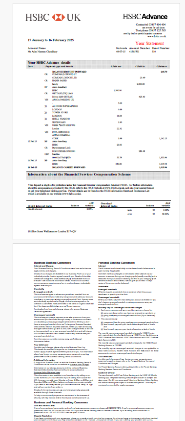🖼️ UK HSBC Bank Statement PDF Template Preview: